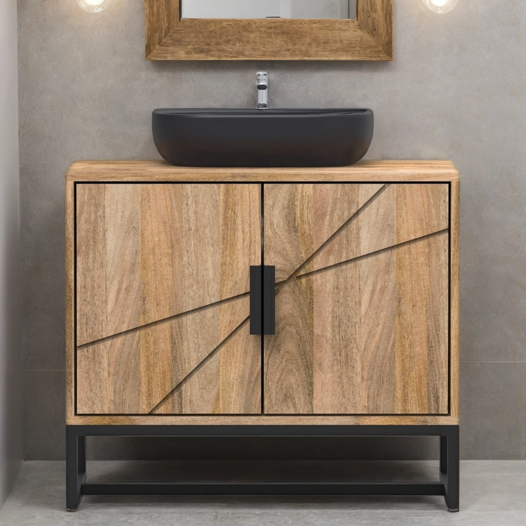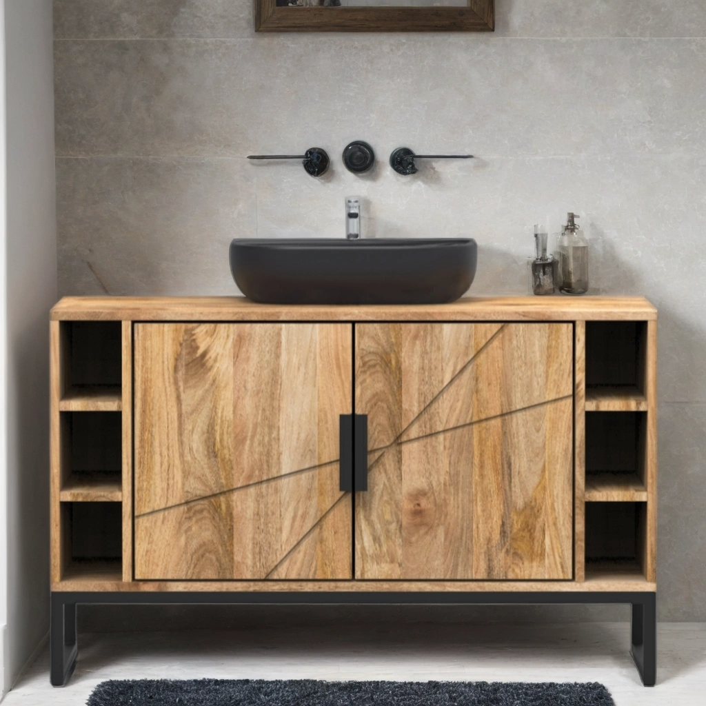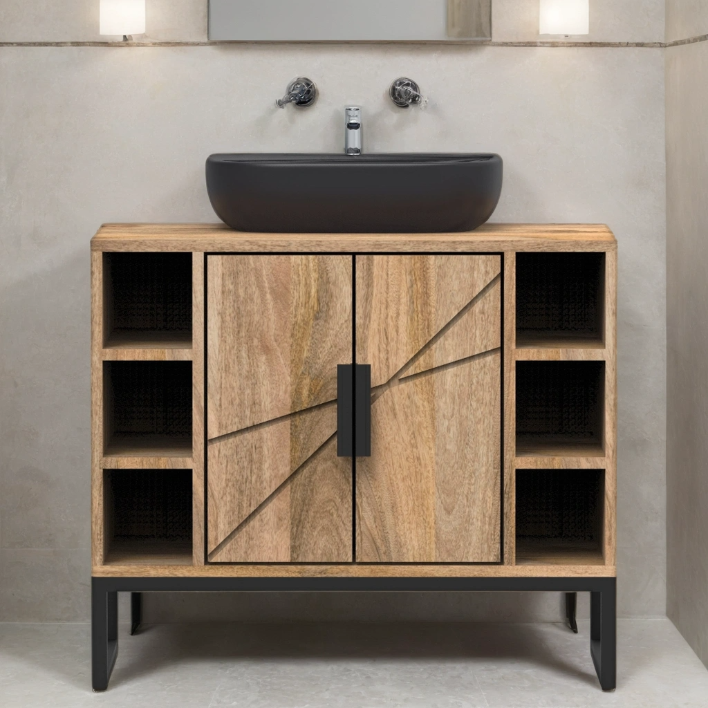 Handmade Solid Wood Bathroom Vanity with Black Basin – Modern Vanity Cabinet