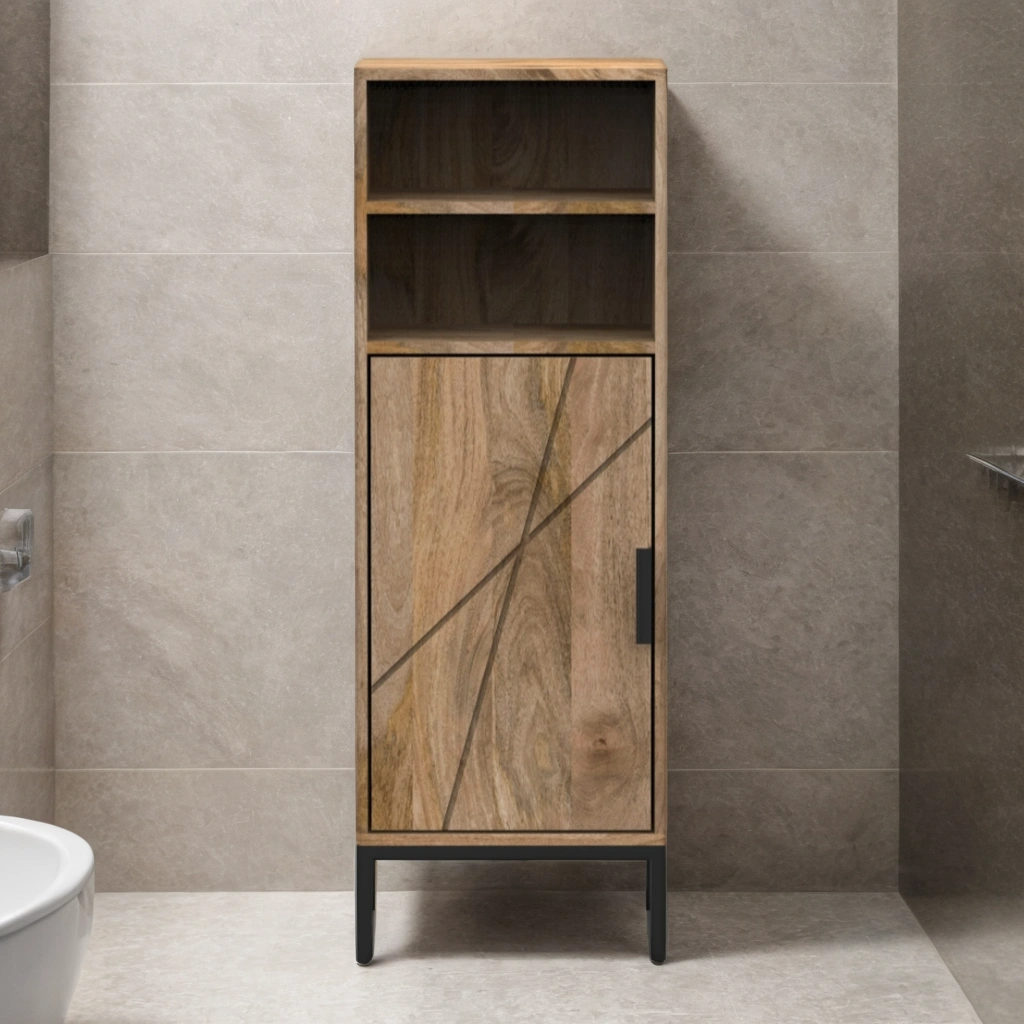 Handmade Solid Wood Storage Cabinet with Open Shelves – Modern Wooden Furniture