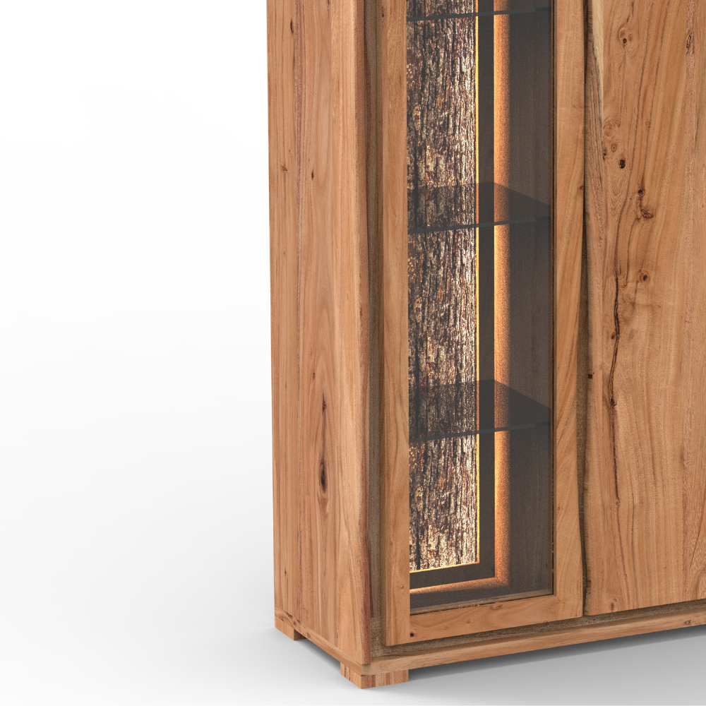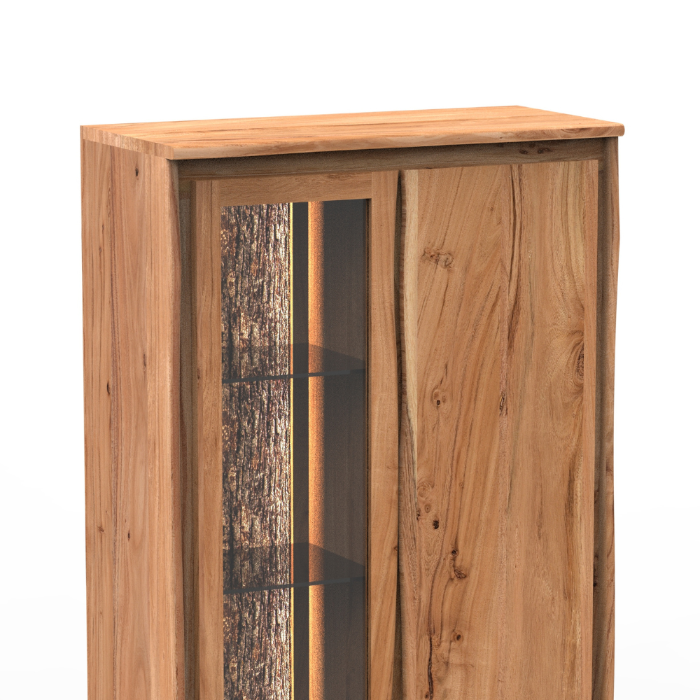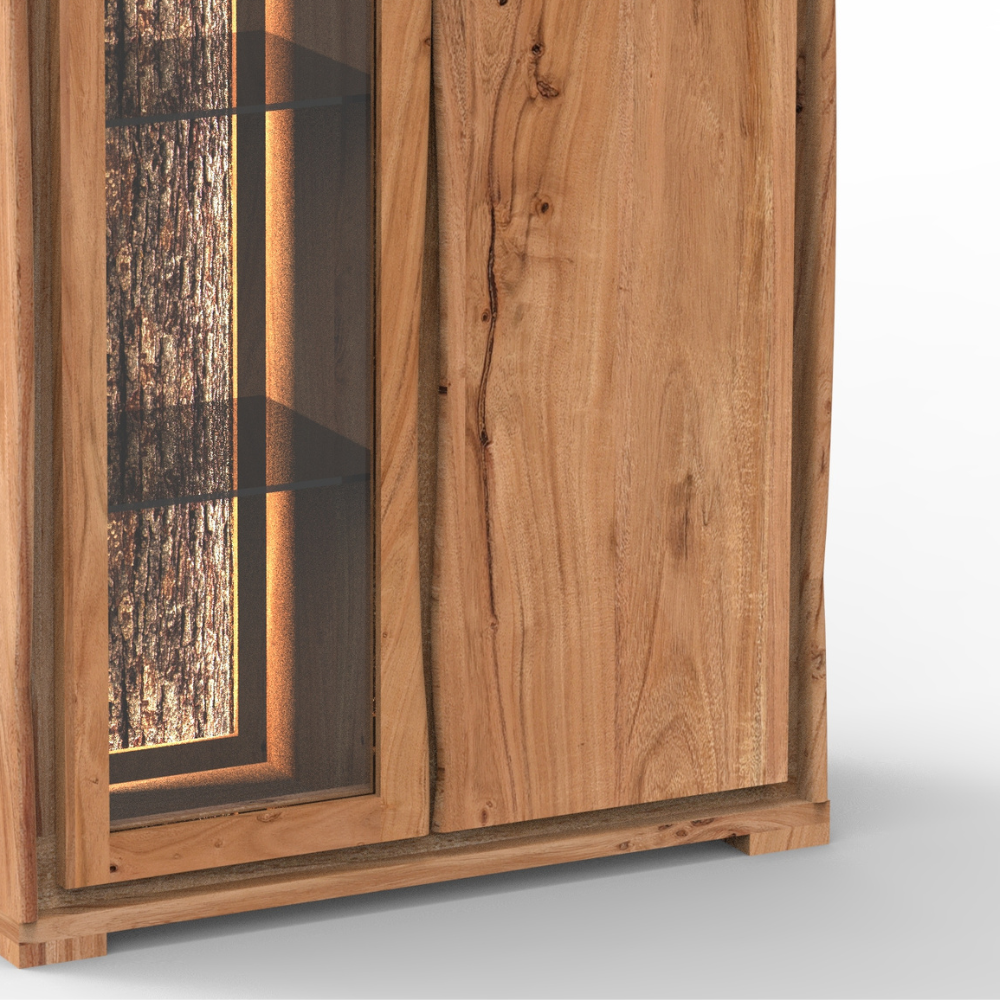 Bring natural charm to your home with this live edge wooden cabinet featuring a glass display door and spacious storage. Perfect for living rooms, dining areas, or offices. Durable, rustic, and modern design combined.