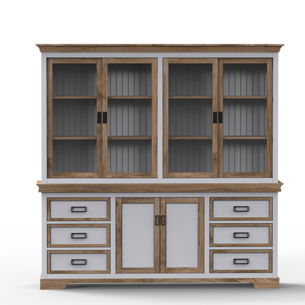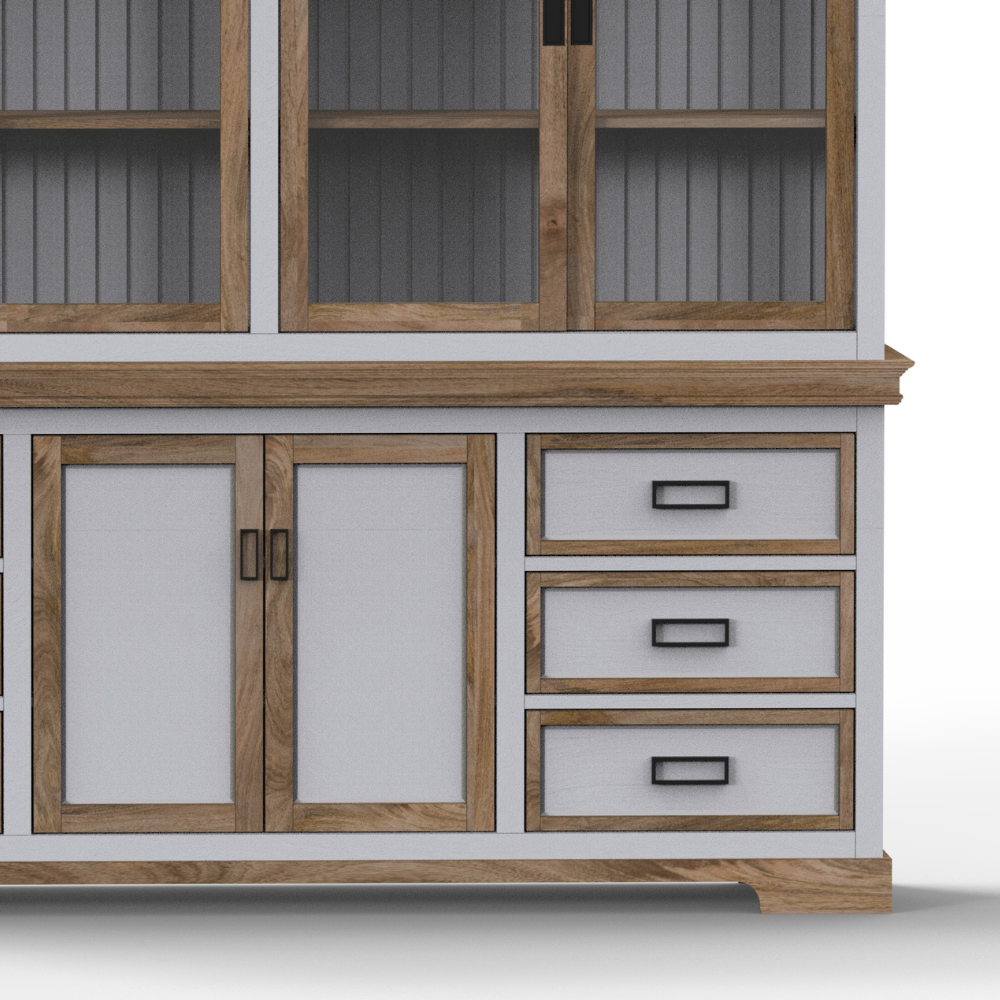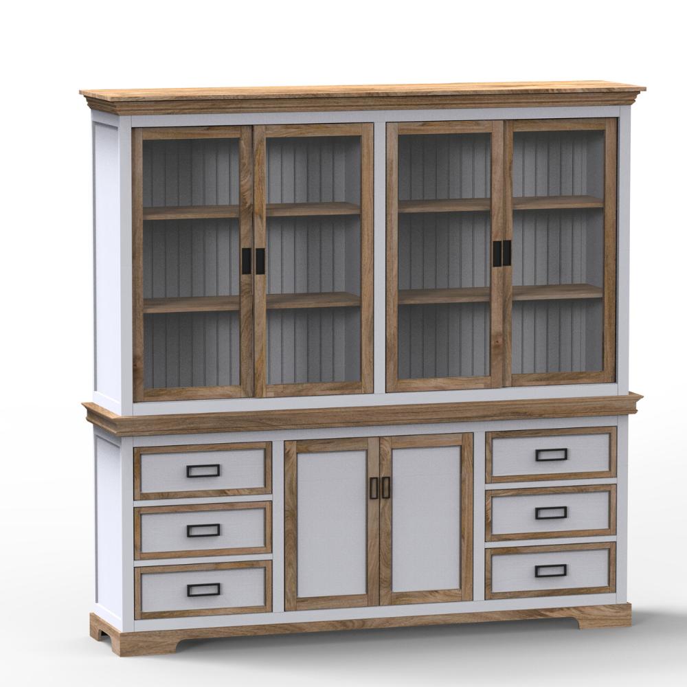 This modern wooden cabinet with glass doors is the perfect blend of functionality and style. Designed with multiple drawers and spacious shelves, it provides ample storage for your essentials while enhancing your interior décor. The natural wood finish combined with sleek glass panels makes it ideal for living rooms, dining areas, or office spaces.