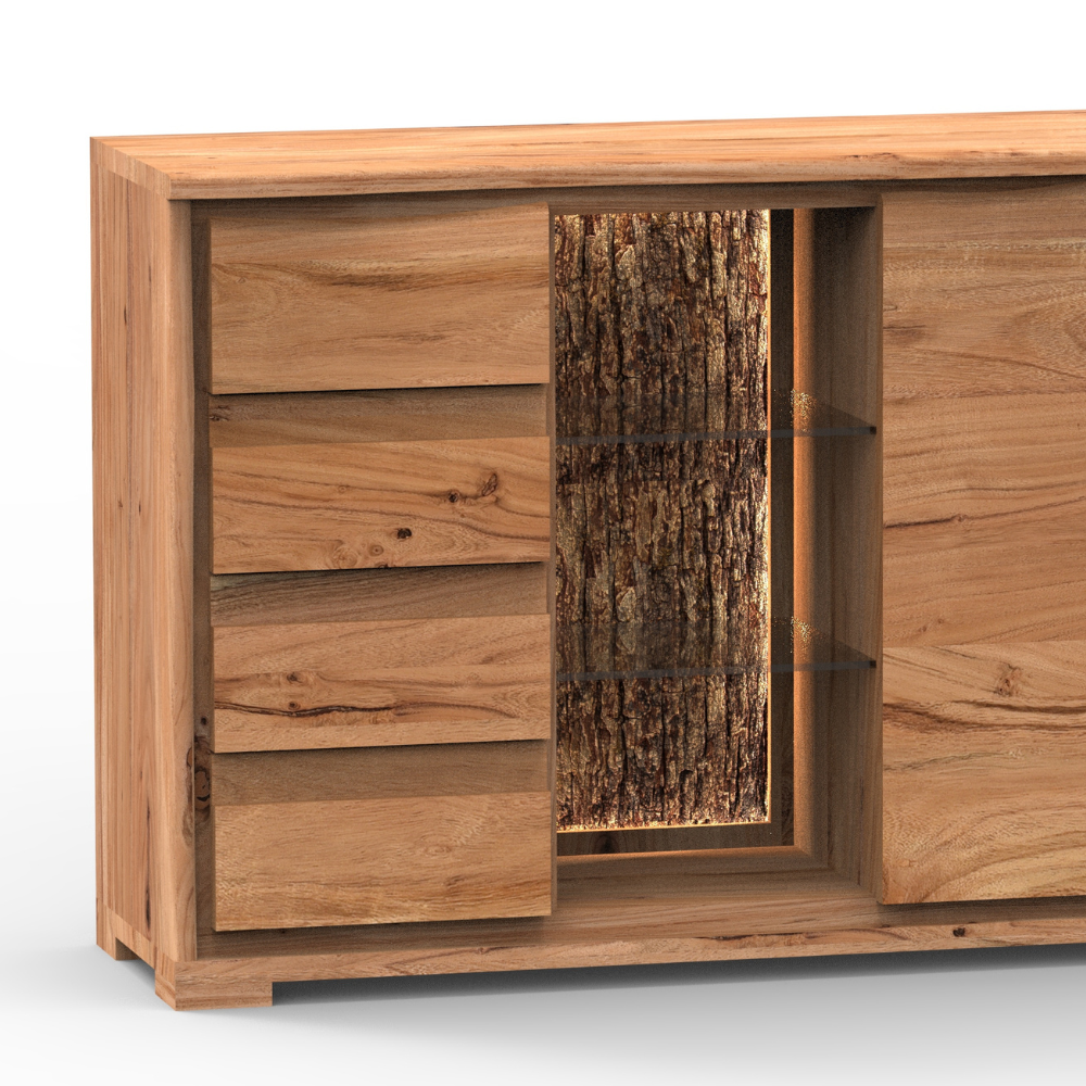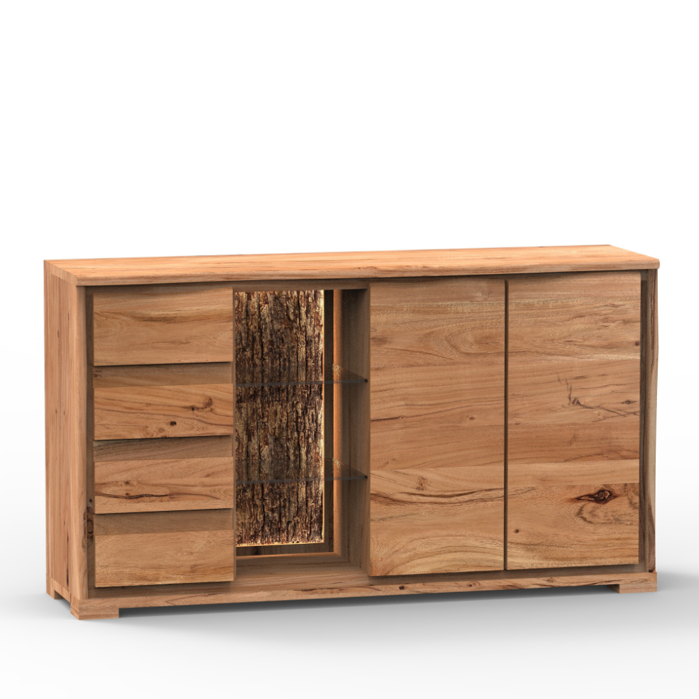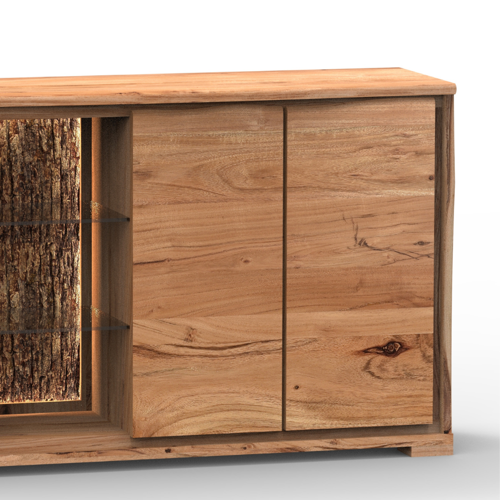 Enhance your home décor with this modern wooden cabinet featuring a natural finish, unique grain patterns, and built-in display space. Perfect as a rustic sideboard or storage unit for living rooms, dining rooms, or offices.
