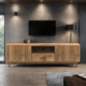 With its natural wood finish and timeless slatted detailing, this sideboard brings warmth and sophistication to modern interiors. It is a perfect balance of rustic charm and contemporary design, making it suitable for both casual and upscale spaces.