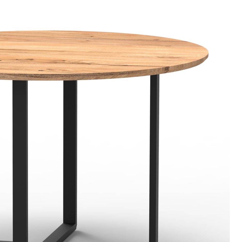 Shop this stylish round wooden dining table with a sturdy black metal base. Perfect for dining rooms, kitchens, or modern interiors. Durable, elegant, and versatile.